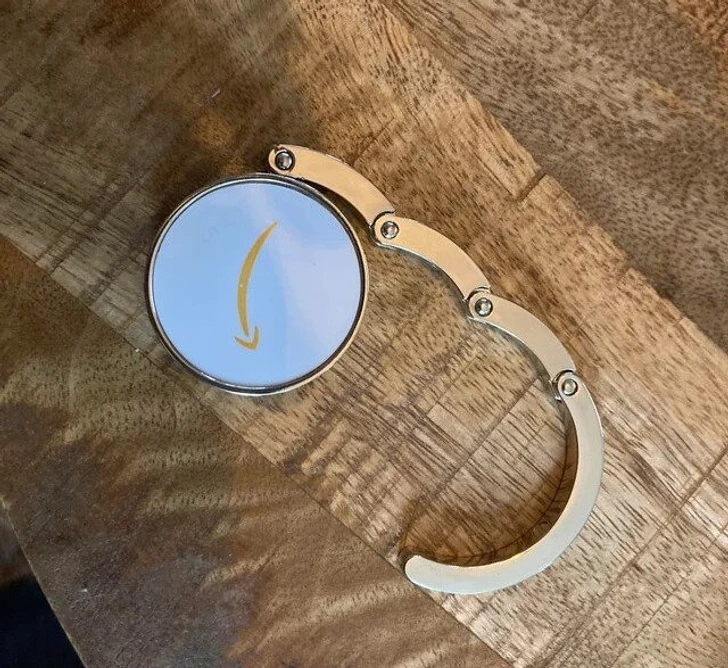 Impossible de comprendre l’utilité de cet accessoire… jusqu’à ce que quelqu’un reconnaisse un crochet pour sac à main. Il se pose sur le bord d’une table et permet de suspendre son sac afin d’éviter de le poser au sol.