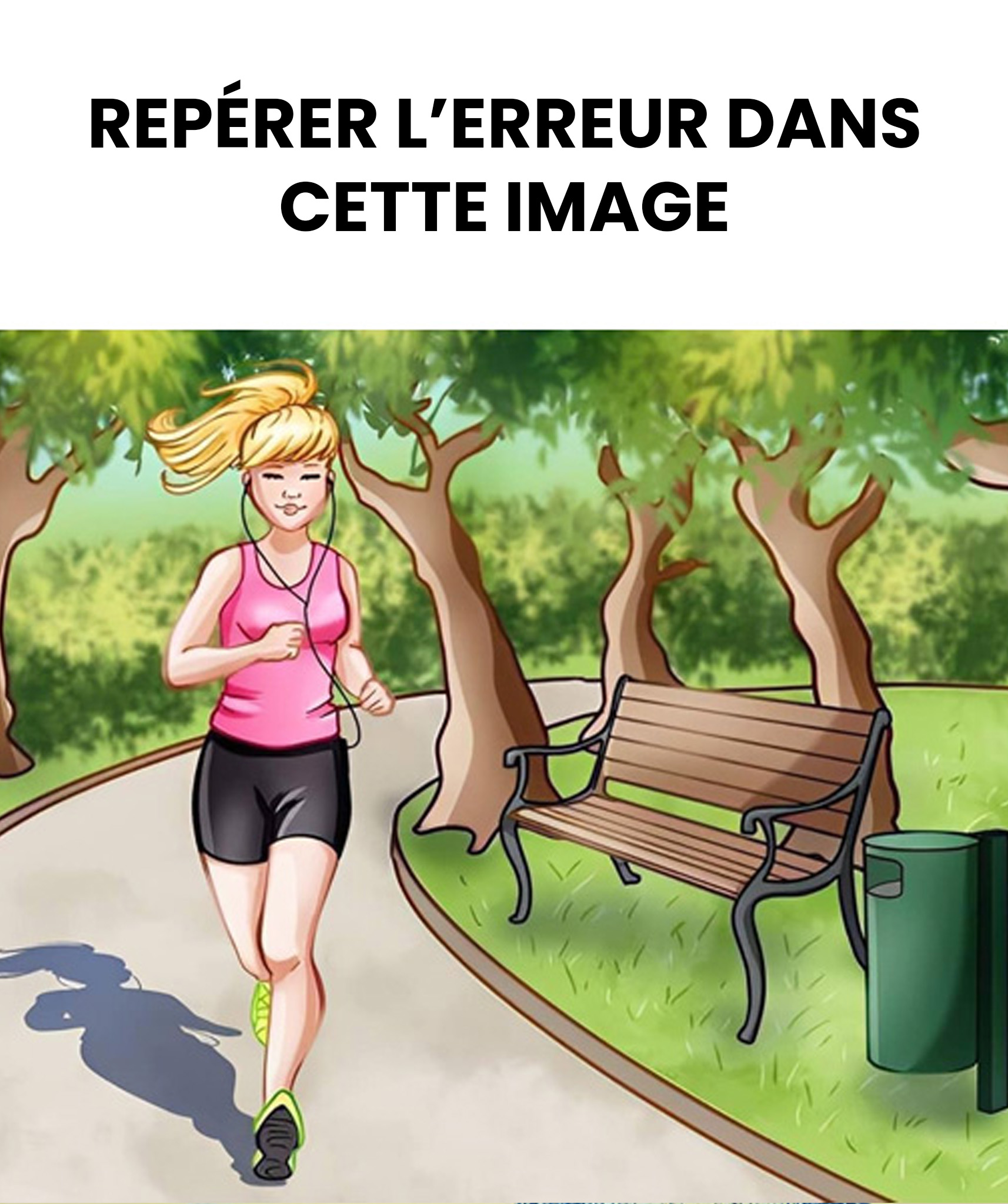 Une athlète s'adonne à son footing dans un cadre verdoyant, mais un détail incongru vient perturber l'harmonie du tableau. Aurez-vous l'œil assez aiguisé pour détecter cette imperfection en un temps record ?