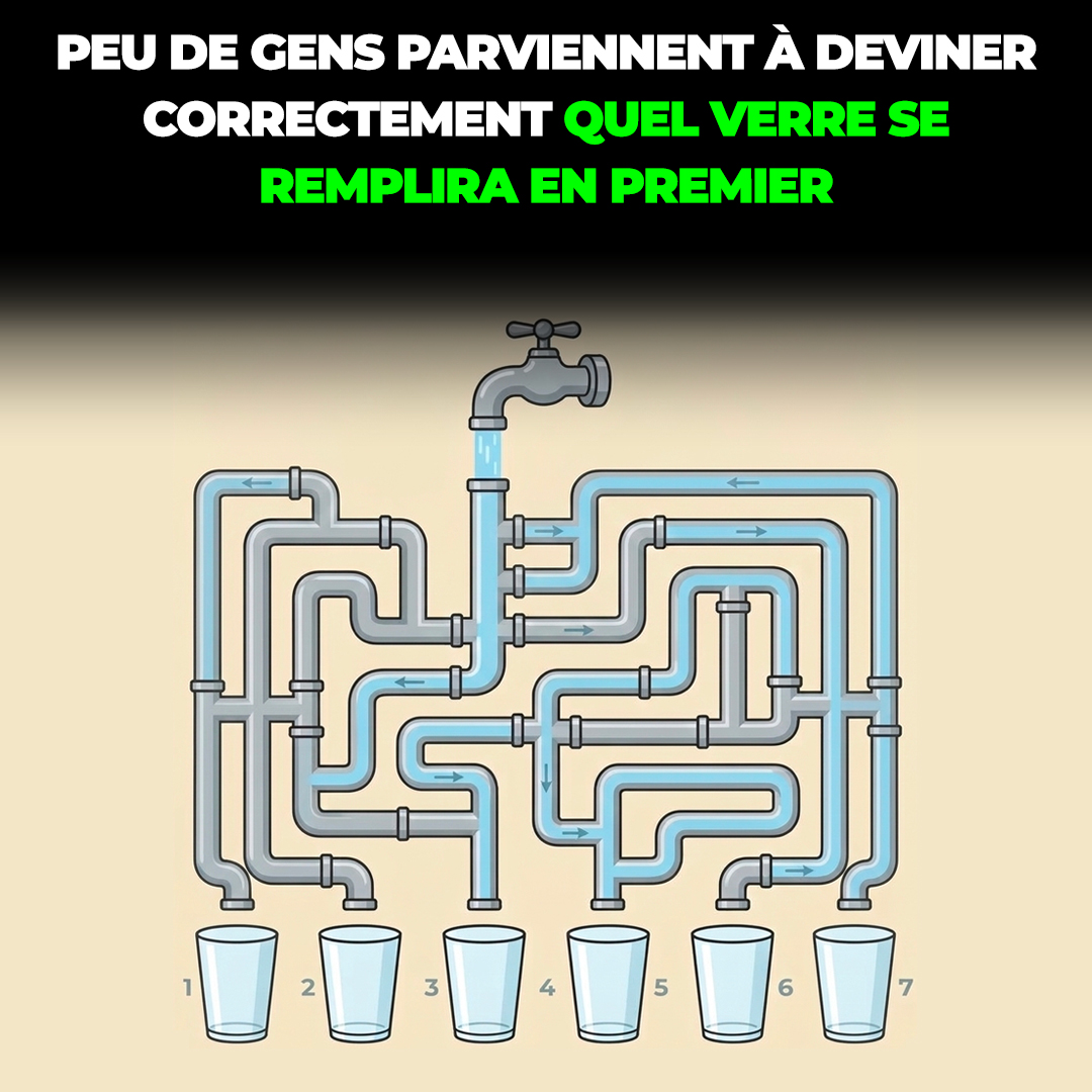 Ce type d’énigme repose sur un principe redoutable : notre cerveau veut aller vite. Dès qu’on voit un réseau de verres reliés entre eux, on cherche instinctivement le chemin “logique” de l’eau. On suit les tuyaux du regard, on anticipe, on compare… et on oublie un détail crucial.