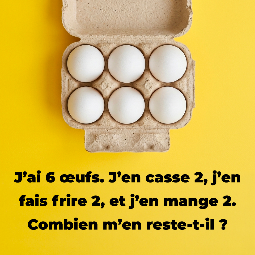 « Je possède 6 œufs. J’en casse 2. J’en fais frire 2. J’en mange 2. Combien m’en reste-t-il ? »