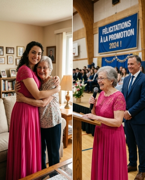 Quelques jours plus tard, j’ai rassemblé toute ma force. J’ai passé la robe, arrangé mes cheveux argentés et me suis dirigée vers le lycée, le soir de la célébration. Je me sentais un peu à part au milieu de cette jeunesse, mais ma raison d’être était claire : donner vie au rêve de ma petite-fille, ne fût-ce que pour quelques heures.