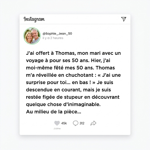 La cinquantaine, pour moi, est une étape chargée de sens. Alors, quand mon tour est arrivé, j'attendais une célébration à la hauteur de ce symbole. Ce que j'ai découvert ce matin-là a transformé cette journée en une leçon sur l'amour et les attentes.
