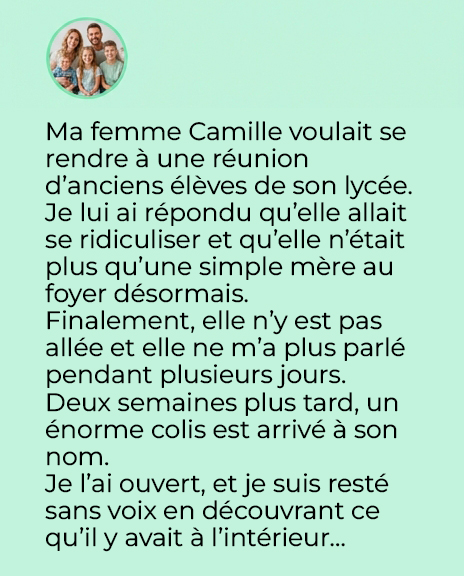 Un énorme paquet. À l’adresse de **Camille**.