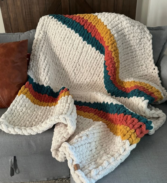 Cette couverture, née des pulls de ma mère, a transcendé sa fonction première. Elle est devenue le récit silencieux de notre famille, un héritage doux et résilient porteur de notre histoire commune.
