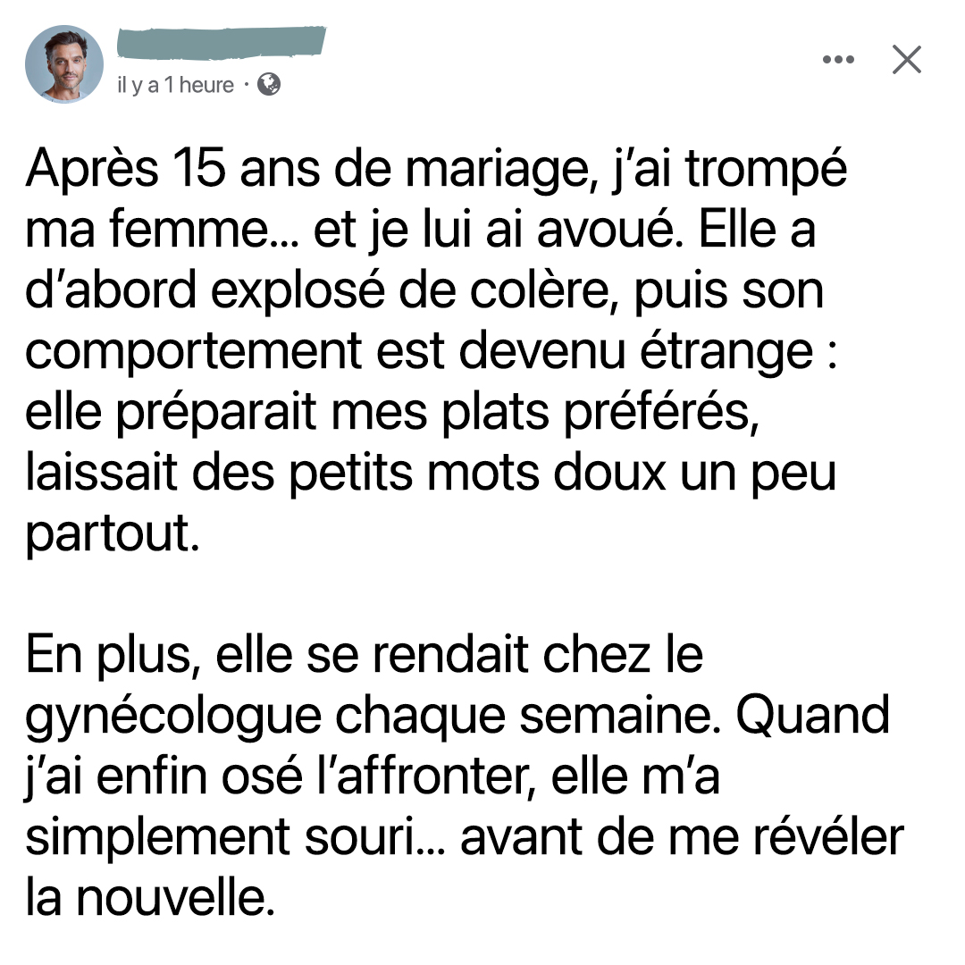 Après une quinzaine d’années de vie commune, j’ai franchi une ligne que je m’étais pourtant juré de ne jamais approcher. Cet acte a ébranlé les fondations mêmes de notre histoire. La honte m’a submergé bien avant que je ne prononce un seul mot : des insomnies à répétition, une perte d’appétit, l’impossibilité de soutenir son regard. Chaque instant partagé avec mon épouse était un rappel cuisant de la réalité que je tentais d’étouffer, terrifié à l’idée de la blesser à jamais.