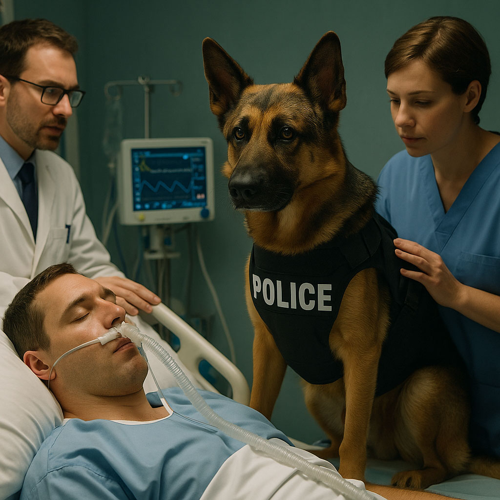 L’agent Thomas Dubois était plongé dans un coma profond depuis quinze jours suite à un accident grave survenu pendant son service. L’espoir s’effilochait peu à peu. Les médecins avaient averti ses proches : il fallait envisager le scénario le plus sombre. Son épouse, Camille, brisée mais déterminée, a osé une requête peu conventionnelle : faire venir Léon, le compagnon canin qui avait partagé le quotidien de Thomas durant sept années.