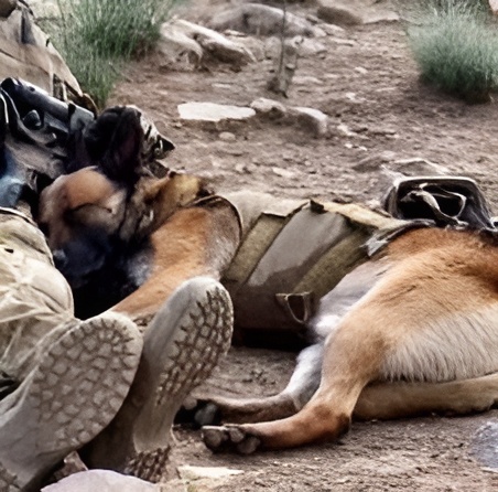 Ce jour-là, la température était si écrasante que l’air paraissait trembler. La terre, chauffée à blanc, renvoyait une chaleur insoutenable. Pour les soldats en mission, c’était une difficulté supplémentaire. Mais pour leurs compagnons à quatre pattes, cela tournait au supplice. Le partenaire canin de l’un d’eux – courageux et loyal – avançait pourtant vaillamment. Jusqu’à ce que chaque pas devienne une souffrance.