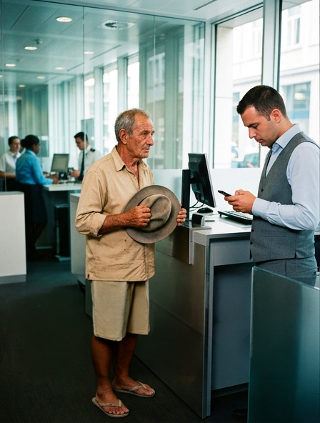 Un homme modeste, aux habits usés par le labeur, franchit la porte d'une banque chic. Les préjugés sont instantanés, jusqu'à ce qu'un appel téléphonique révèle une vérité qui fait vaciller les certitudes. Cette histoire nous rappelle que la valeur d'une personne ne se mesure pas à son apparence.