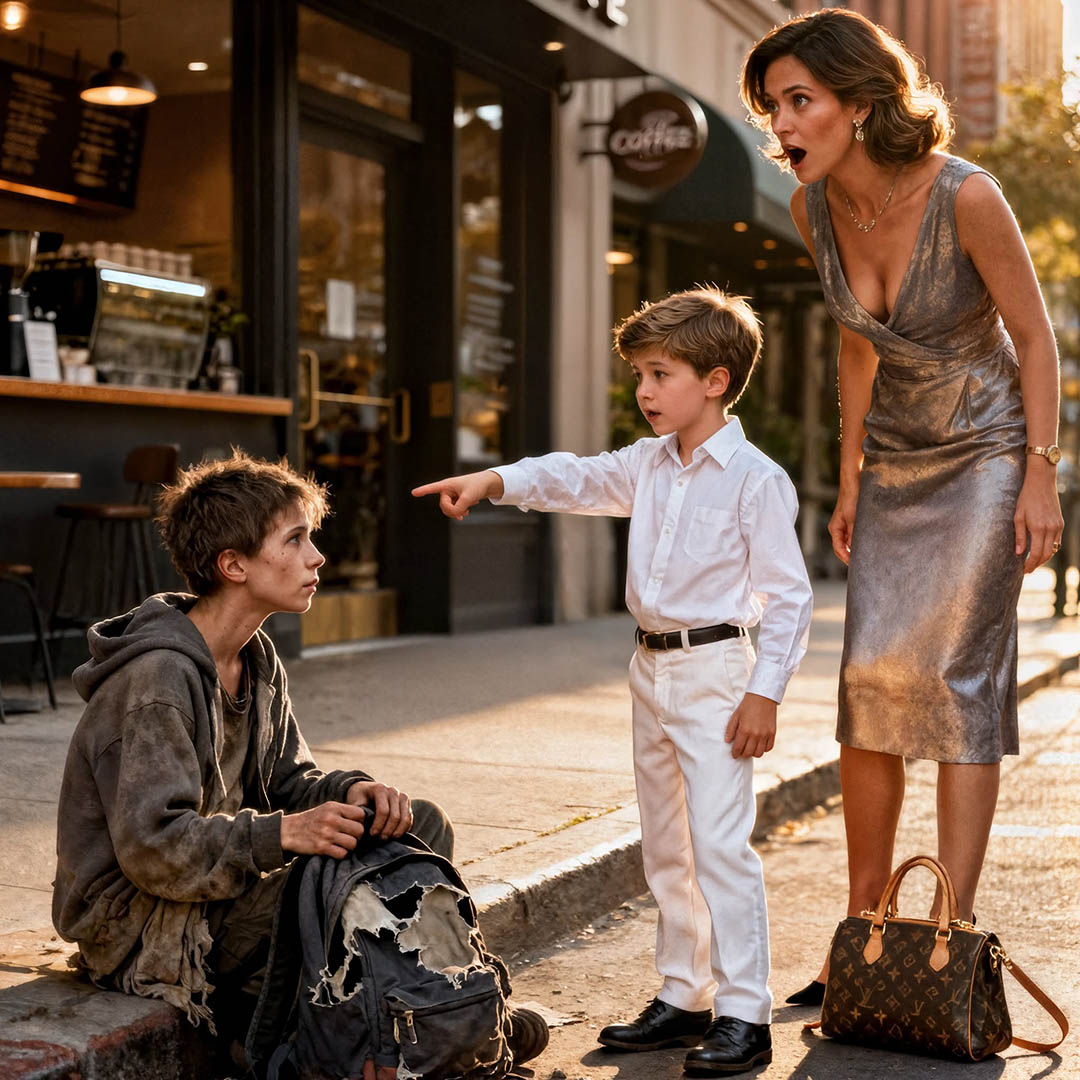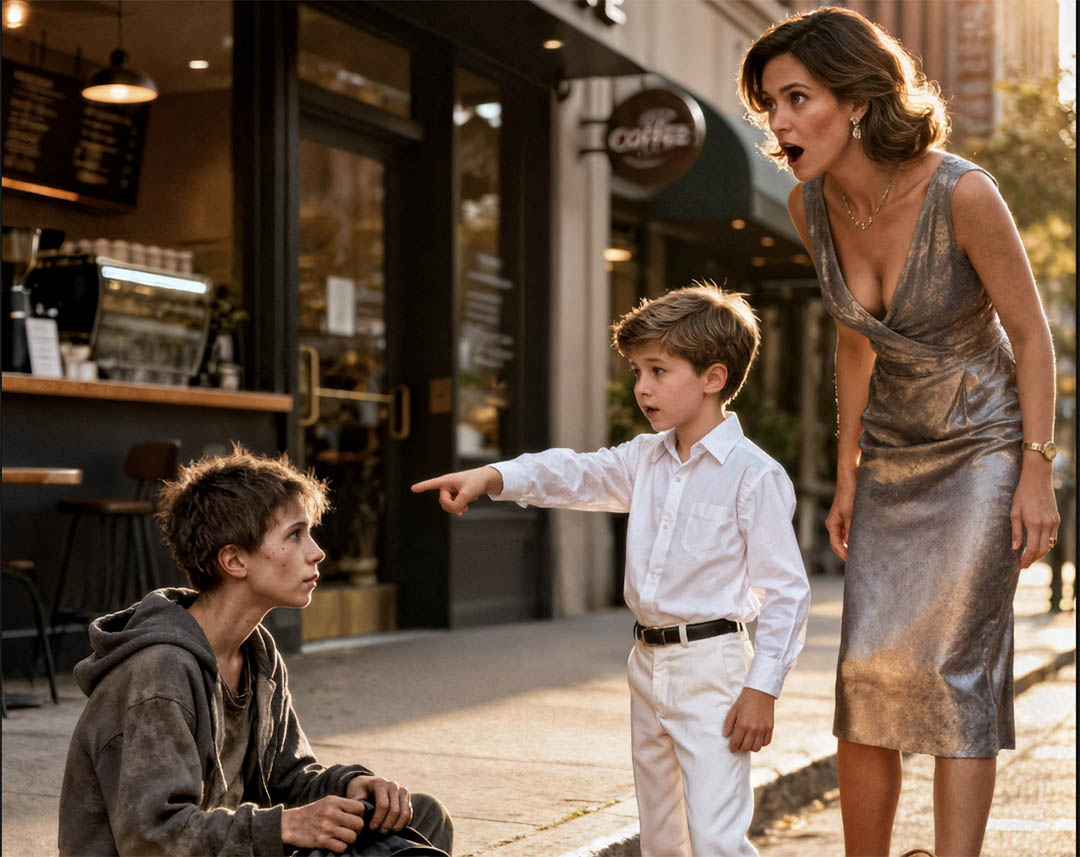 Claire tourna son attention vers l’autre côté de la chaussée, où se tenait un enfant recroquevillé sous un parapluie en lambeaux. Ses vêtements étaient trempés, son visage couvert d’éclaboussures de boue, mais ses yeux… ces grands yeux brun intense et cette fossette si particulière au menton… lui rappelaient étrangement quelqu’un.
