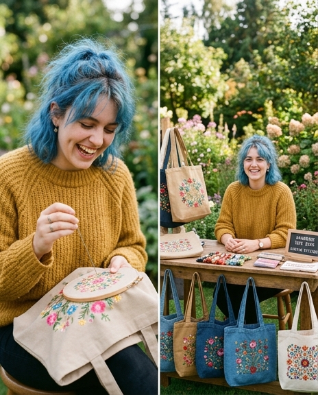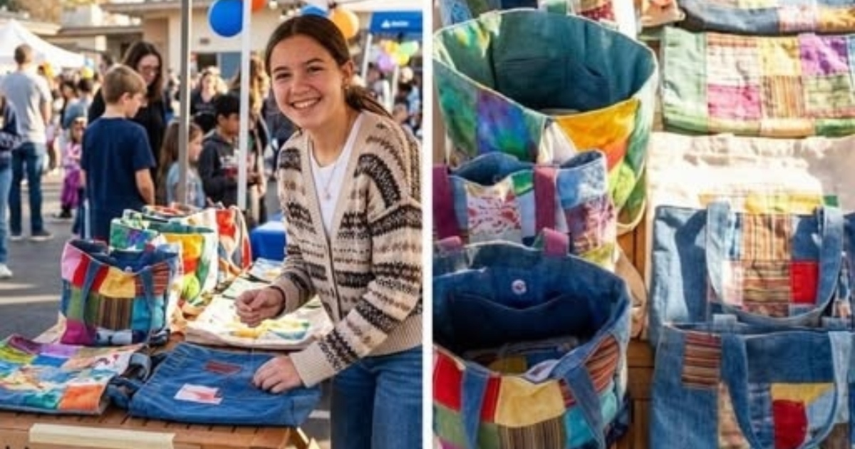 Pendant des semaines, elle confectionne avec une minutie touchante des sacs en tissu uniques, créés à partir de matériaux recyclés, afin de collecter des fonds pour des familles en difficulté.