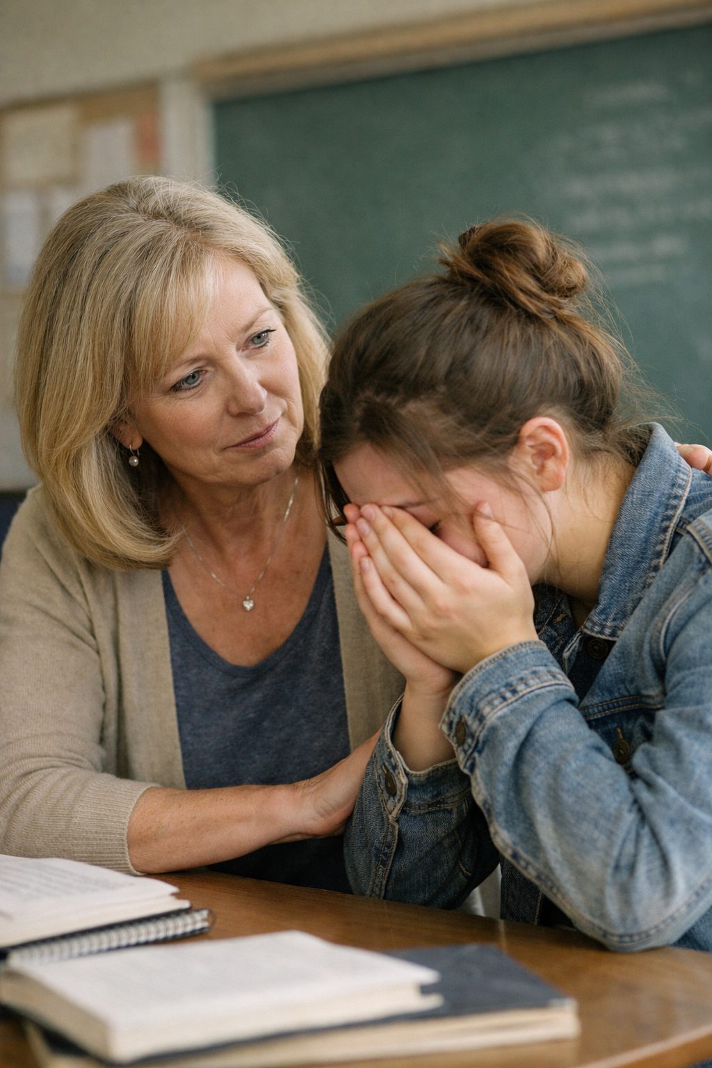 Claire, son professeure d’anglais, possédait cette intuition rare et cette douceur désarmante. Une simple remarque, « Tu n’es pas dans ton assiette aujourd’hui », a fait craquer la digue. Les mots et les larmes se sont libérés.