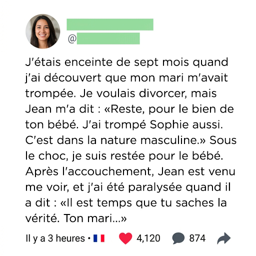 Enceinte de sept mois, j'ai cru que la trahison de mon mari signait la fin de tout. Mais c'est dans le silence d'une chambre d'hôpital, grâce à une révélation bouleversante de mon père, que mon histoire a pris un tournant inattendu.