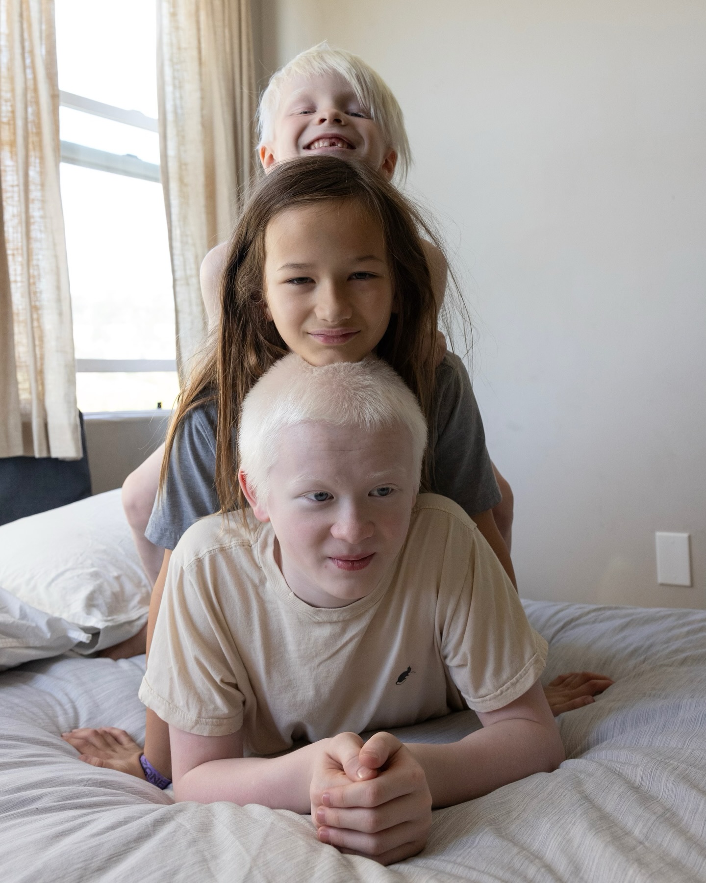 À la naissance de Redd, les sages-femmes étaient fascinées par ses cheveux immaculés et ses yeux d’un bleu presque translucide. Patricia, elle, ne réalisait pas encore combien cette différence susciterait la curiosité — et parfois l’incompréhension. Mais lorsque son deuxième fils, Rockwell, est né avec la même particularité, la jeune maman savait cette fois à quoi s’attendre.