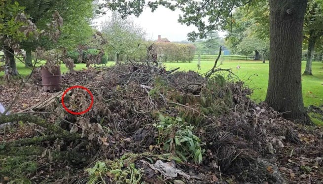 À première vue, cette image pourrait sembler représenter un simple amas de branches entremêlées, sans aucun détail marquant. Aucune teinte éclatante ne captive le regard, aucune silhouette précise ne se détache de ce fouillis naturel. Pourtant, au milieu de ce chaos végétal se cache un épagneul, figé et merveilleusement intégré à son décor.