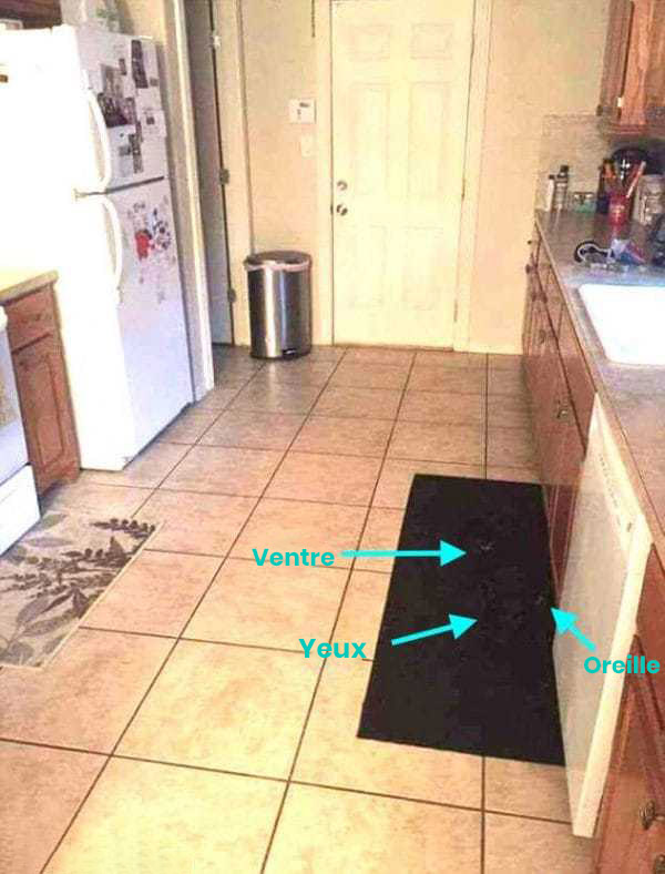 Ces images intrigantes stimulent notre esprit, semblables à un jeu de mots croisés dominical. Dans une cuisine qui semble tout à fait normale, un invité inattendu se cache : un grand chien se fondant parfaitement dans le décor. Certains ne le remarquent pas, tandis que d'autres éclatent de rire en le découvrant soudainement. Et vous, l'avez-vous repéré ? Avant de vous donner des indices, voici une technique visuelle qui pourrait bien tout changer sans gâcher la surprise.
