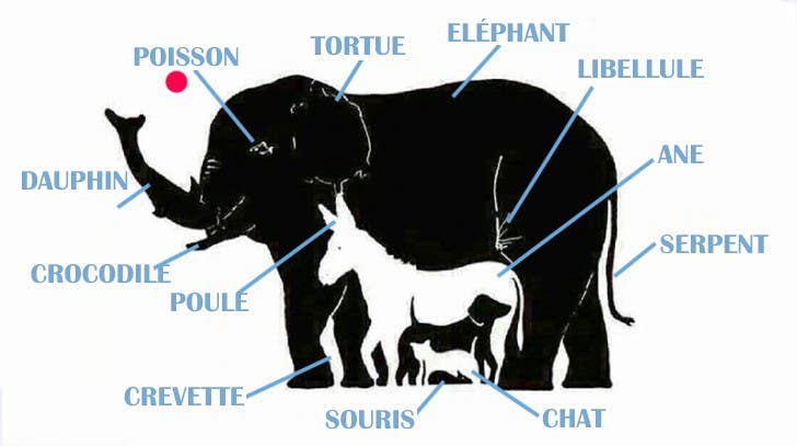 Une illustration particulièrement surprenante fait actuellement le buzz sur Internet, défiant même les plus attentifs. Au premier coup d’œil, on n’y devine que cinq animaux : un éléphant, un âne, un chien, un chat et une souris. Mais attention, les apparences sont trompeuses : ce dessin cache en réalité pas moins de treize créatures !