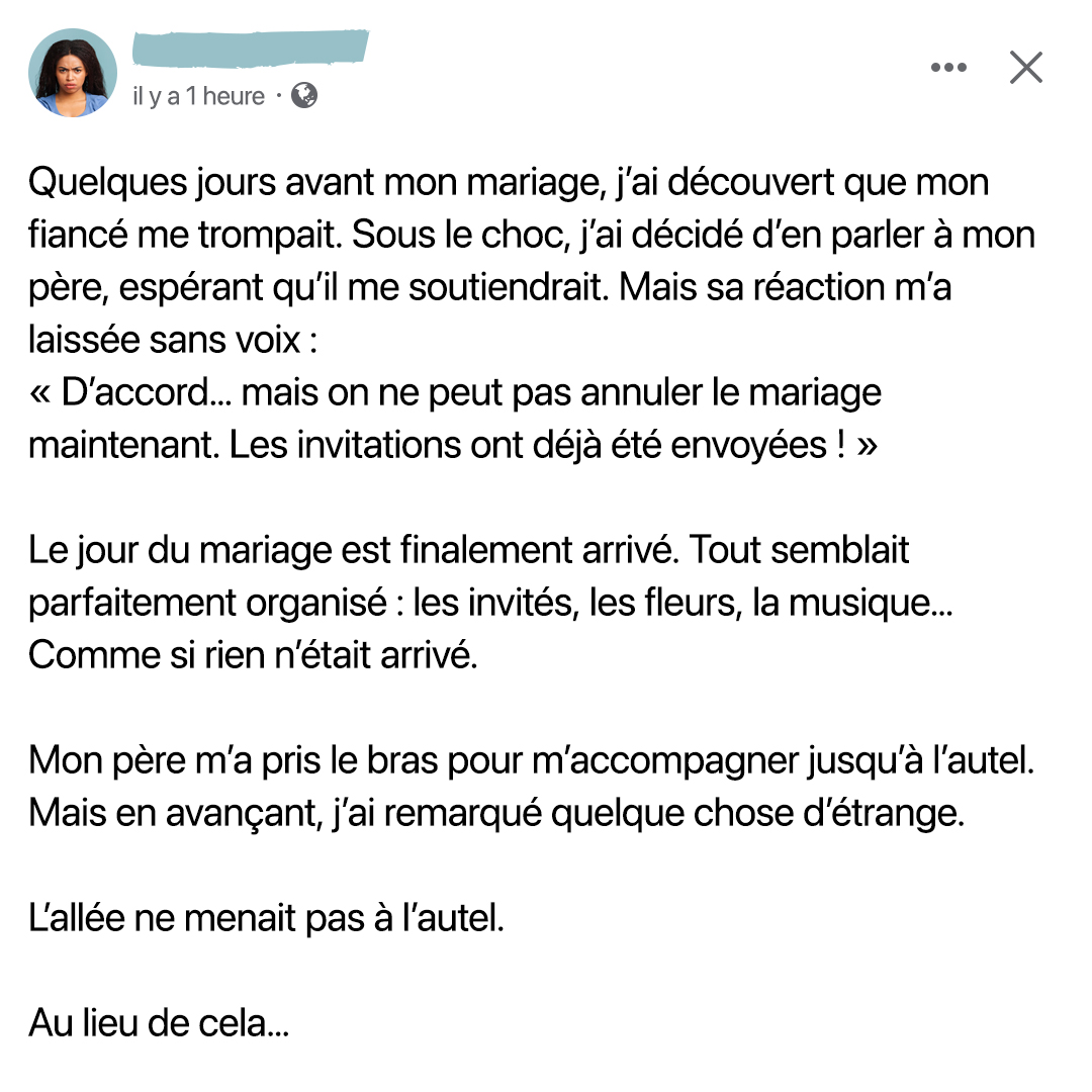 À quelques jours de la cérémonie, la révélation d’une trahison frappe comme un éclair. L’univers s’écroule, les fondations les plus solides se fissurent, laissant place à un sentiment d’étouffement. Comment envisager l’avenir quand la personne qui incarnait « l’amour de votre vie » ne correspond plus du tout à ce que vous imaginiez ?