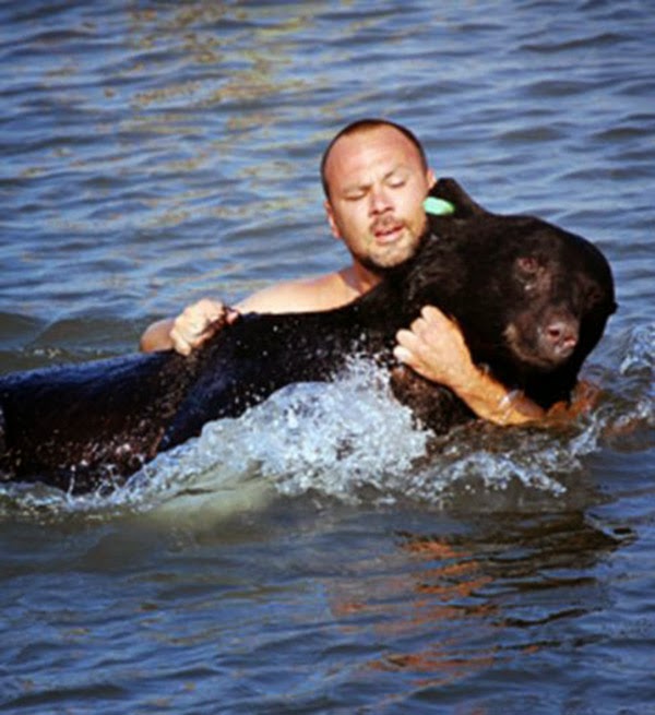 Étonnamment, l’ours n’a montré aucune agressivité. On pourrait penser qu’il a senti la bienveillance de son sauveur.