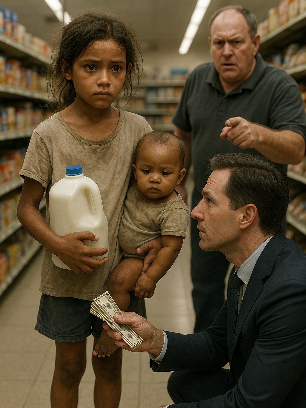 Quand elle a révélé que leurs parents étaient « partis sans espoir de retour », l’émotion a serré le cœur de l’homme. Sans la moindre hésitation, il a pris le pack de lait et a déclaré calmement : « Elle vient avec moi. »