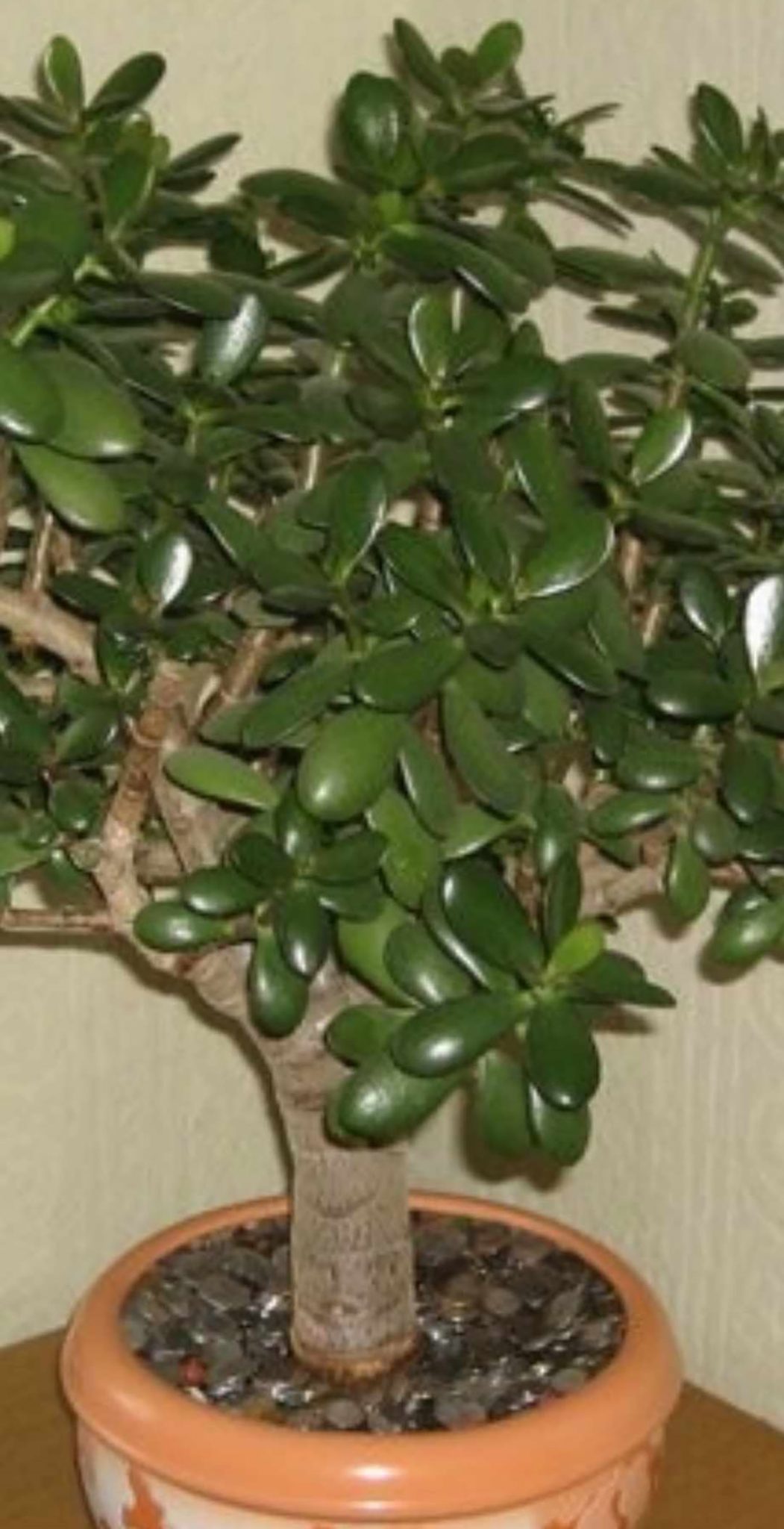 Sous ce nom poétique se cache une succulente que vous connaissez sûrement : la Crassula ovata, plus familièrement appelée arbre de jade. Ce qui frappe d’emblée, c’est son allure. Avec son tronc solide qui se divise en branches et ses feuilles charnues, rondes et brillantes, elle ressemble à un bonsaï qui se serait formé tout seul. Cette architecture unique lui donne une présence à la fois rassurante et zen, comme un petit roc de tranquillité posé sur votre table ou votre étagère.
