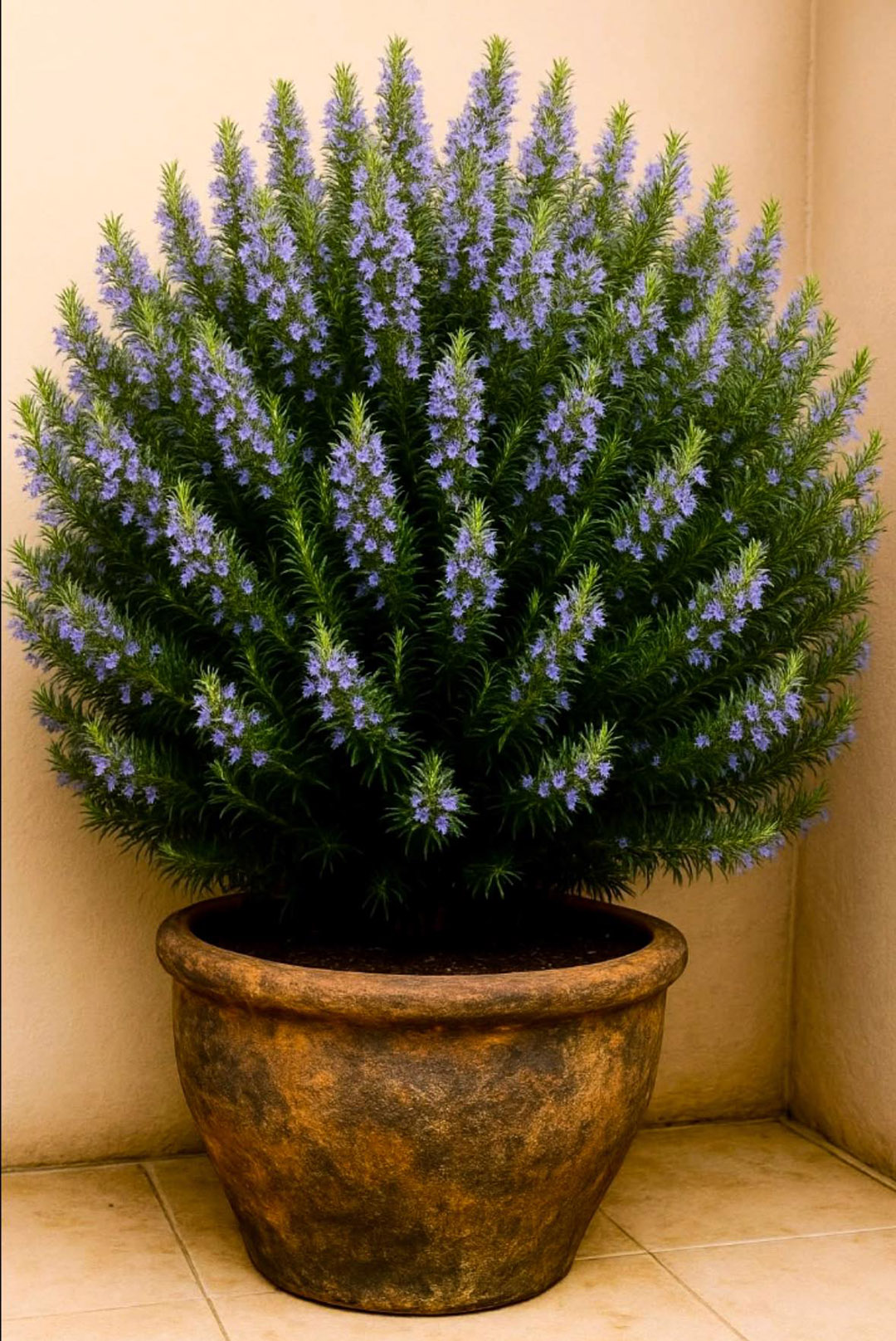 C’est souvent le point le plus délicat. Le romarin a horreur d’avoir les racines qui baignent dans l’eau. La règle d’or est la modération : attendez toujours que la terre soit complètement sèche en surface avant d’arroser à nouveau. Un pot avec des trous de drainage, accompagné d’une soucoupe que vous viderez après chaque arrosage, est indispensable pour éviter tout risque de pourriture.