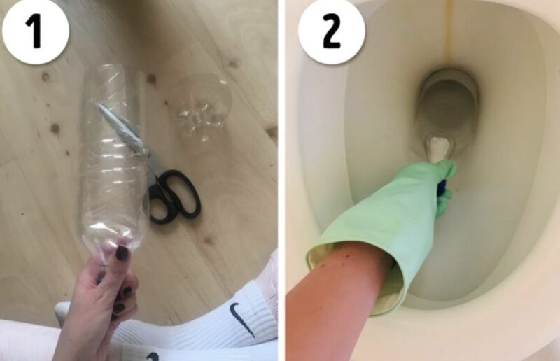 Face à des toilettes bouchées et sans ventouse sous la main, une bouteille de 2 litres peut vous sauver la mise. Coupez son fond et utilisez-la comme une ventouse de fortune en effectuant des mouvements vigoureux de poussée-tirage.