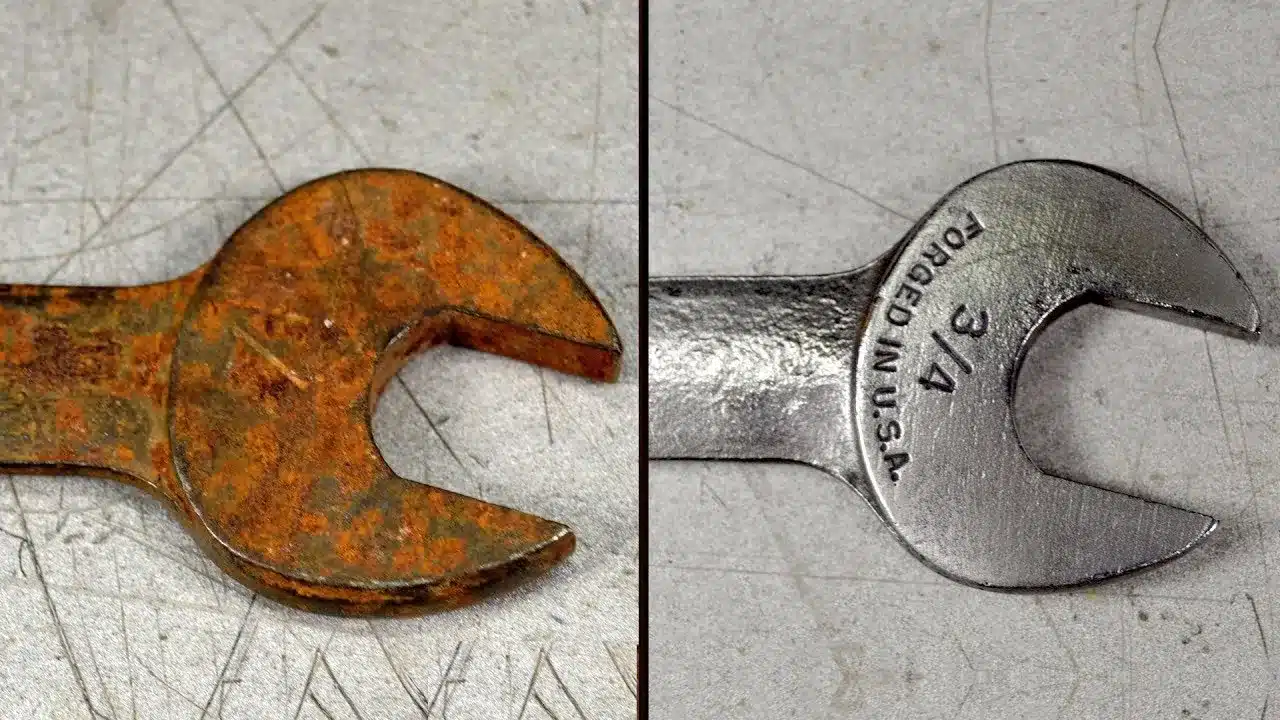 Explication du processus : l’acide acétique contenu dans le vinaigre réussit à décomposer activement les accumulations de rouille.