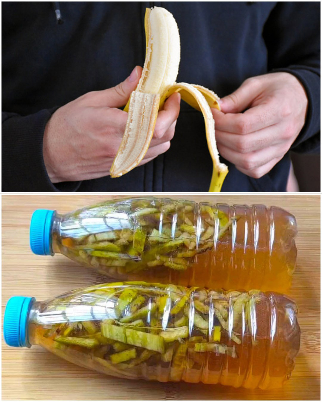 - Récupérez et nettoyez bien plusieurs peaux de banane pour éliminer les impuretés, puis coupez-les en morceaux assez fins.