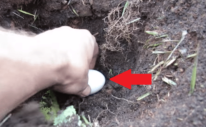 - Creusez un petit trou d’environ 15 à 20 cm de profondeur, que ce soit en pleine terre ou dans un grand pot. Déposez un peu de terre au fond.