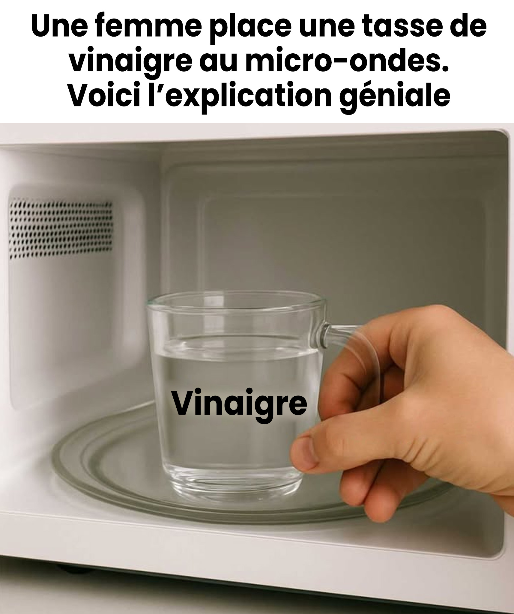 Pour reproduire cette technique chez vous, c’est très simple. Prenez un bol adapté au micro-ondes et mélangez à parts égales **125 ml d’eau** et **125 ml de vinaigre blanc**. Faites chauffer à puissance maximale pendant **5 à 10 minutes** (augmentez un peu si l’appareil est très encrassé). Une fois le cycle terminé, patientez ! Laissez reposer **2 à 3 minutes** sans ouvrir la porte, le temps que la vapeur fasse son travail.