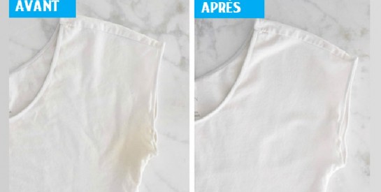 Ces auréoles jaunâtres sous les aisselles sont le cauchemar des vêtements clairs. La magie opère grâce au pH acide du vinaigre blanc, qui dissout les accumulations de sueur et de déodorant.