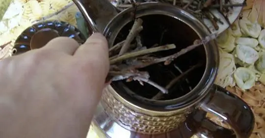 - On commence par choisir une ou deux brindilles de cerisier, suffisamment longues pour entrer dans une casserole ou une bouilloire.