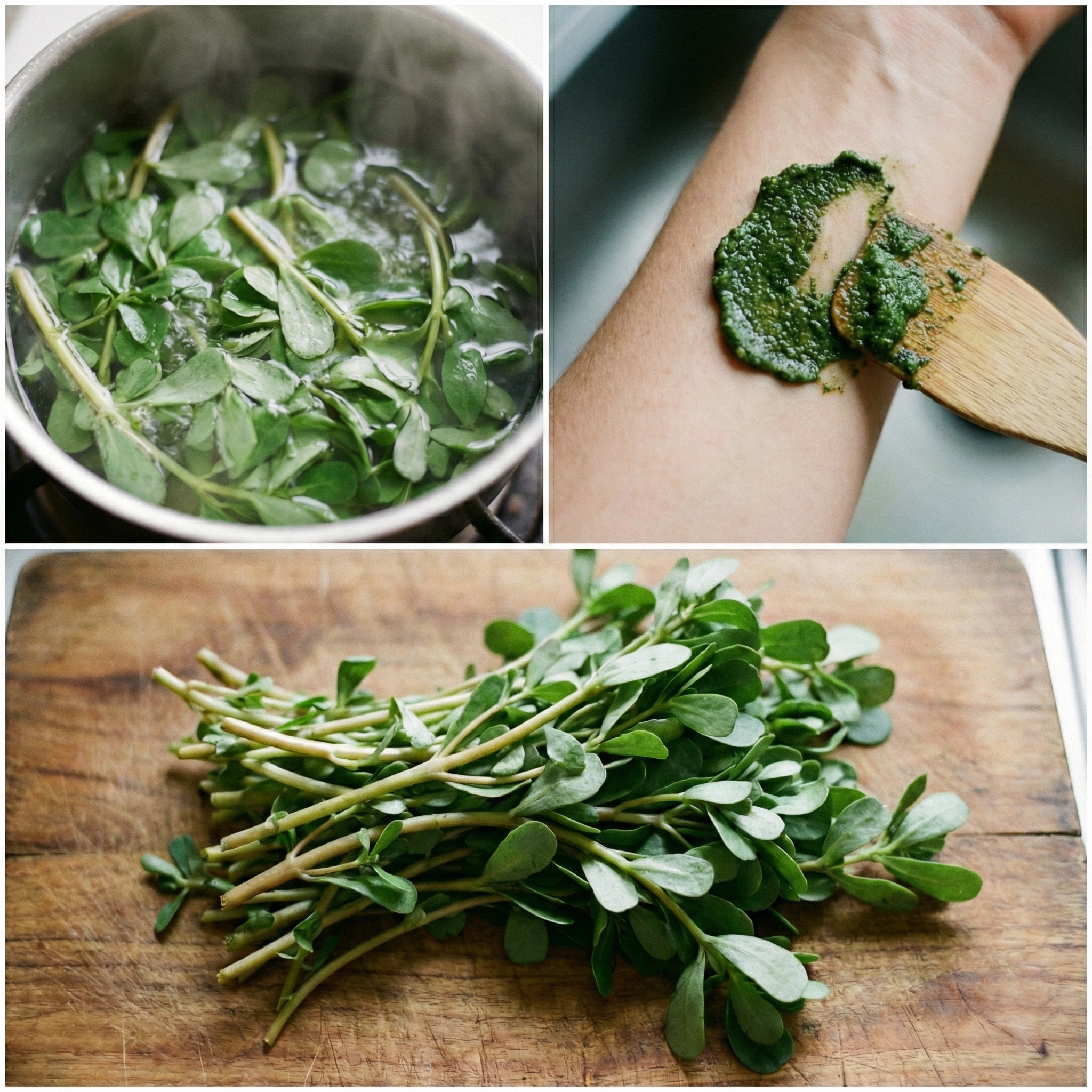 - Lavez le pourpier délicatement à l’eau froide et essorez-le doucement dans un torchon propre.
