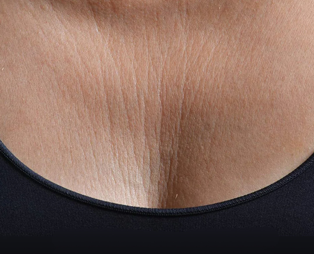 La peau qui recouvre le décolleté est naturellement plus fine et plus délicate que celle du visage. Elle produit moins de sébum, ce qui la rend plus sensible à la déshydratation et à la perte de fermeté. Quand on y ajoute les effets cumulés des rayons UV, de certaines postures ou d’un manque de soins, elle devient un terrain propice aux ridules et à la perte d’élasticité.