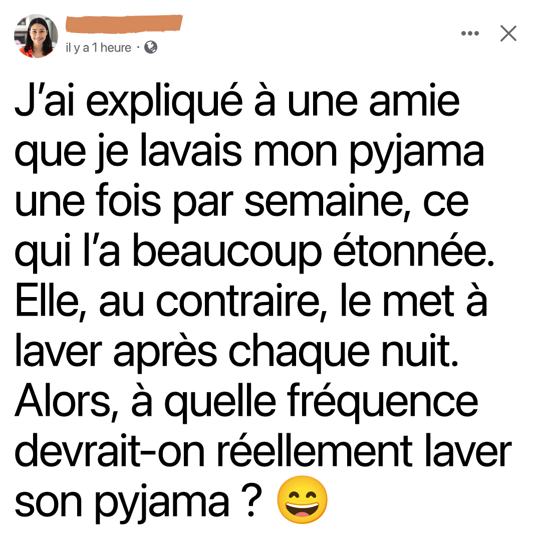 Selon votre mode de vie et votre environnement, la fréquence idéale de lavage peut donc varier. Une personne qui transpire beaucoup la nuit ou qui dort dans une pièce chaude devra laver son pyjama plus souvent qu’une autre installée dans une chambre fraîche et bien aérée.