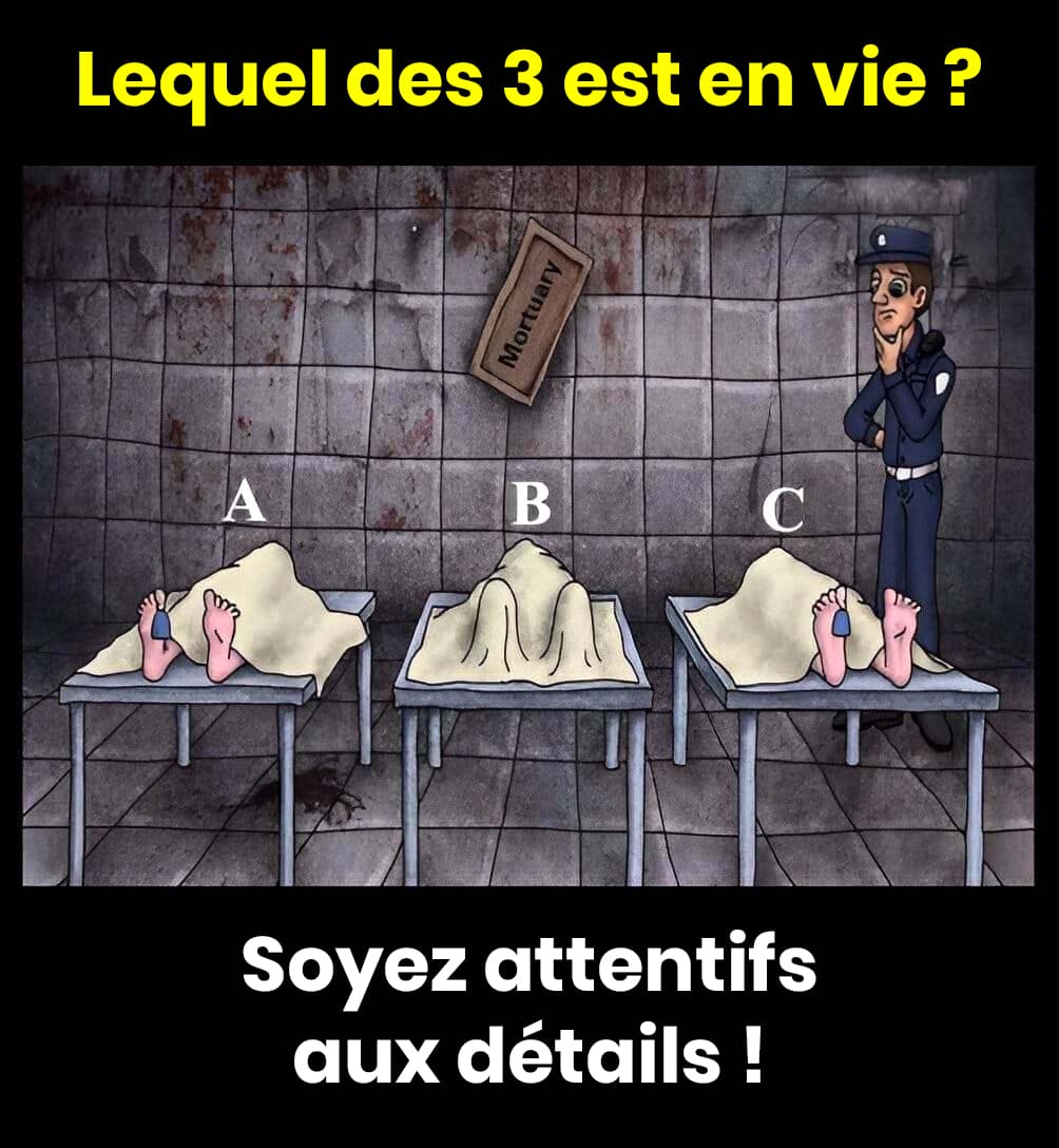 Imaginez une scène figée. Trois personnes. Aucun bruit, aucun geste. Une seule question persiste : laquelle montre des signes de vie ? C’est à vous de jouer.