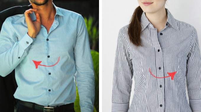 Les boutons positionnés à gauche sur les vêtements féminins tirent leur origine des habitudes des femmes de l’aristocratie qui se faisaient aider par des servantes droitières. Les boutons placés à droite sur les habits masculins proviennent des traditions militaires et de la nécessité d’accéder rapidement aux armes.