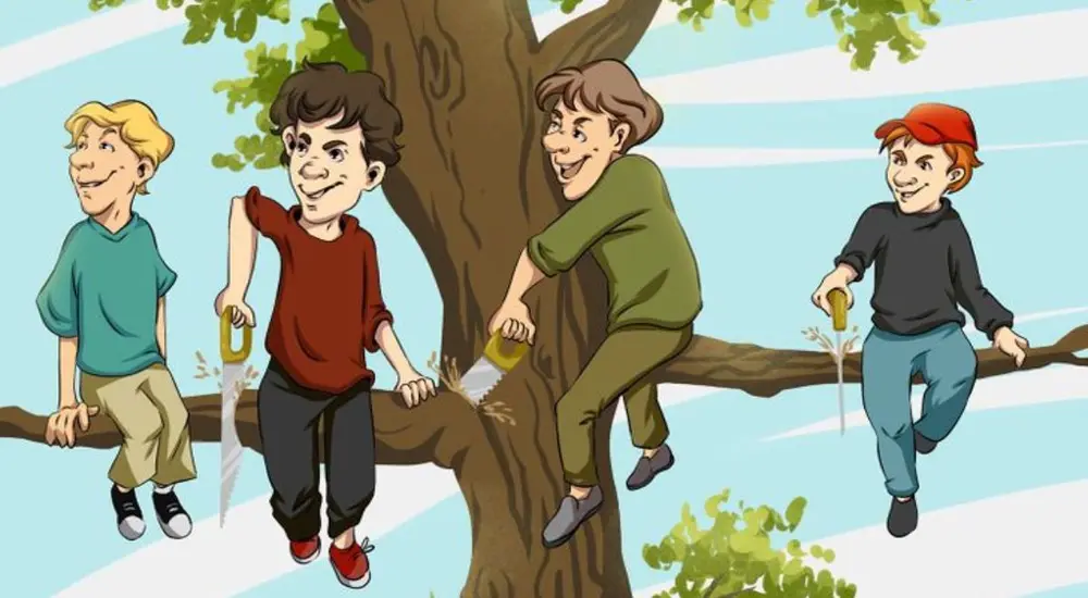 Dans le quotidien aussi, il nous arrive de prendre des décisions hâtives sans en mesurer les effets à venir. Comme sur ce dessin, on peut parfois manquer de hauteur de vue et « scier la branche » qui nous porte, sans s’en apercevoir.