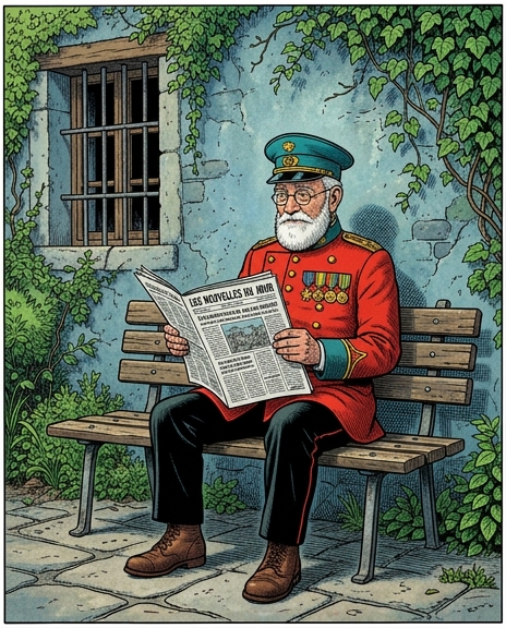 L’image dépeint un moment de calme : un monsieur, installé sur un banc, est absorbé par sa lecture. L’ambiance est sereine, le cadre familier. Pourtant, un élément du décor a été subtilement retiré. Votre mission ? Identifier ce vide.