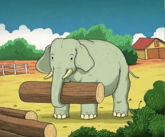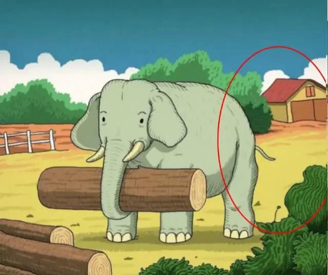 Un éléphant, une maison... et pourtant, un détail échappe à la plupart des regards. Êtes-vous capable de déceler la silhouette d'un cheval, habilement dissimulée dans cette scène, en un temps record ?